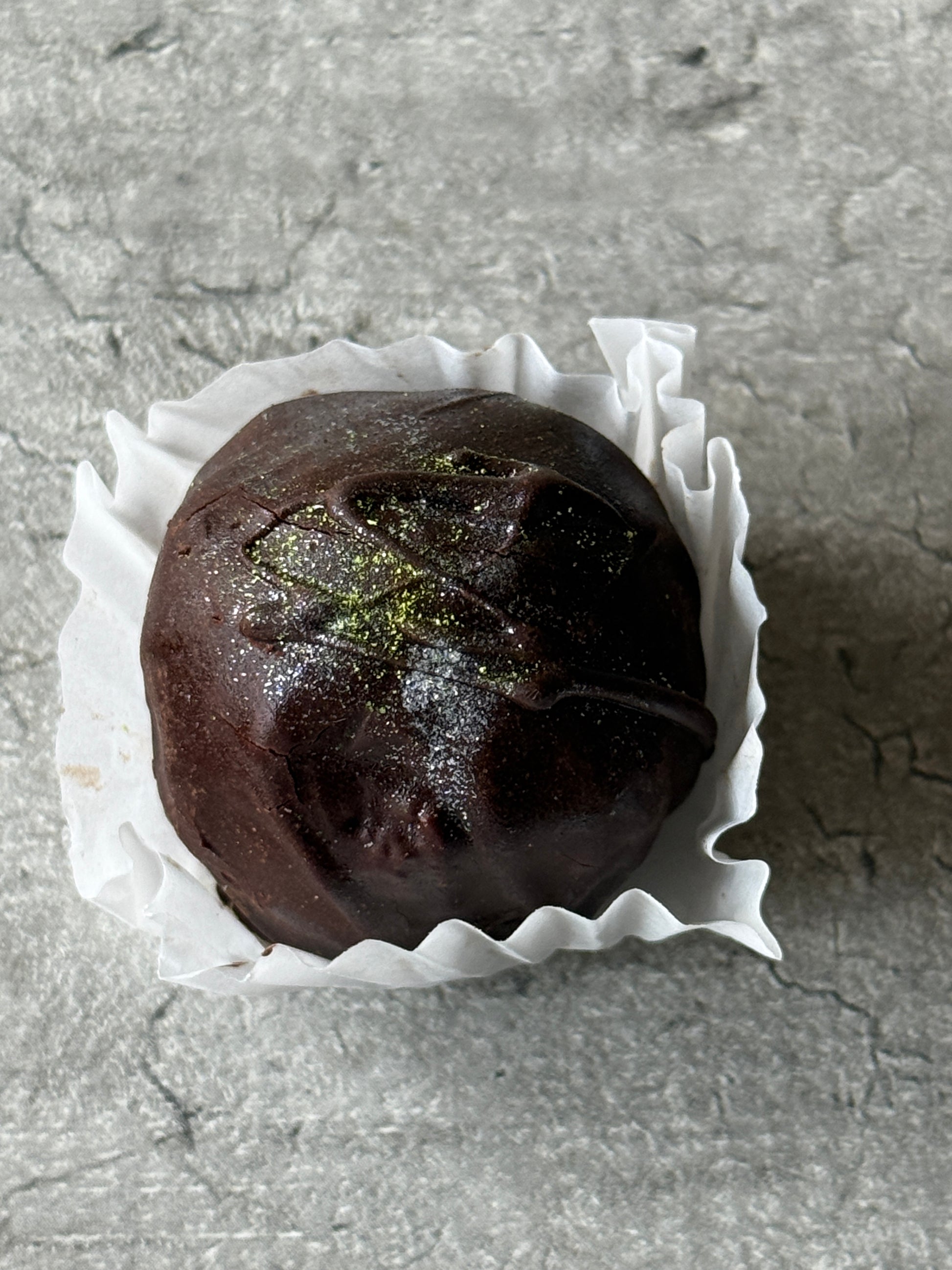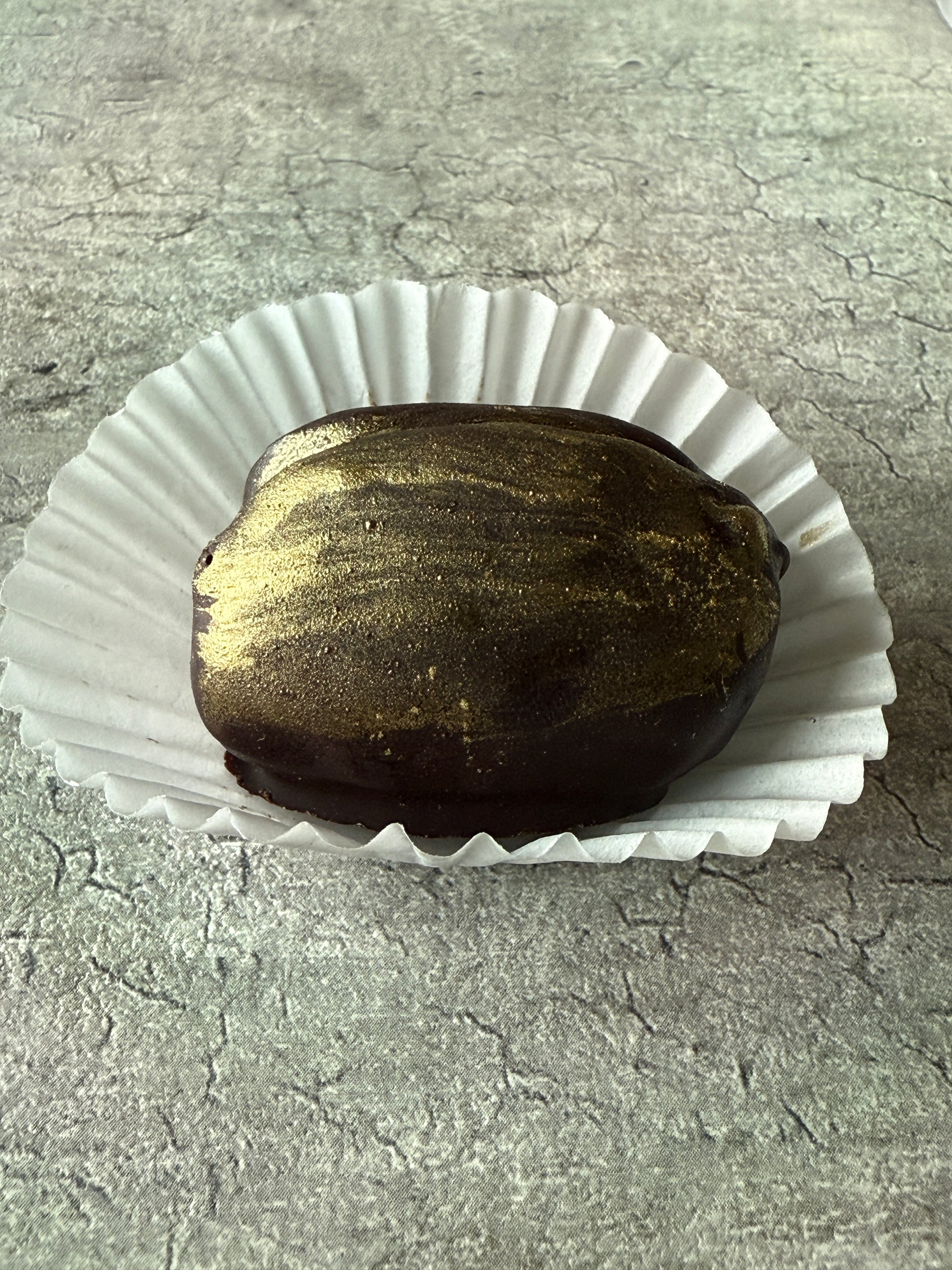 - Gold Walnut Date (double size): Dates, Walnuts, Dark Chocolate (unsweetened chocolate, sugar, cocoa powder, soy lecithin).