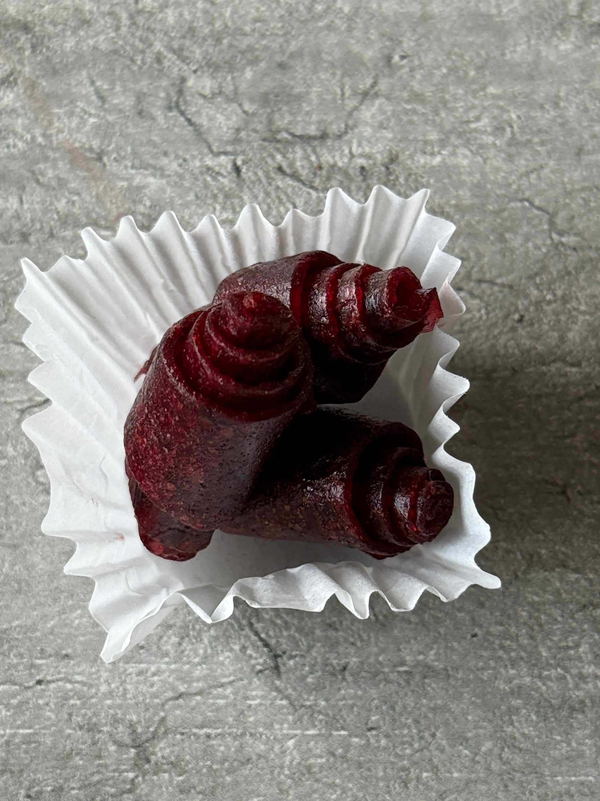 Pastila = slow-dried fruit roll made from three ingredients: fruit, apple base, and a touch of honey.